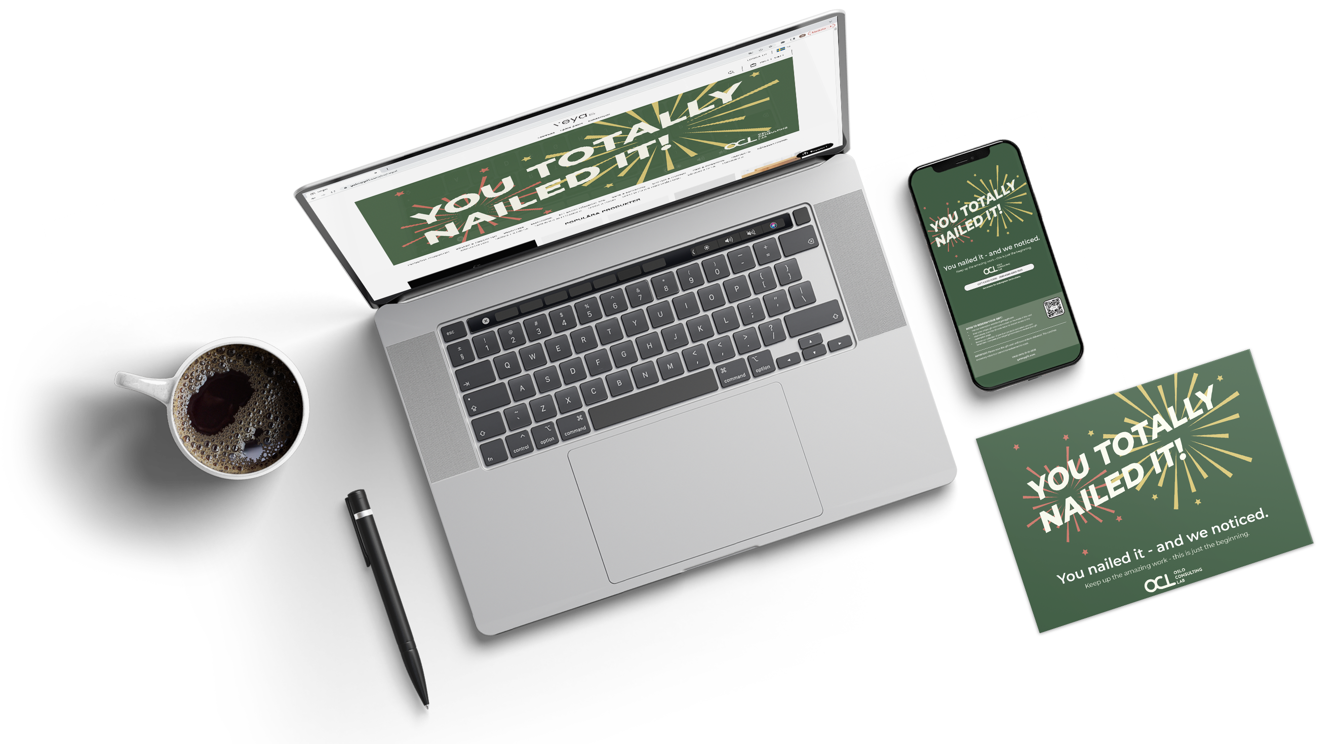 Het ontwerp van je Veya-cadeaubon is helemaal aan jou. Voel je je niet zo creatief? Wij helpen je graag met een mooi ontwerp! Voeg een persoonlijk bericht toe en je cadeaubon is klaar om te worden verzonden.