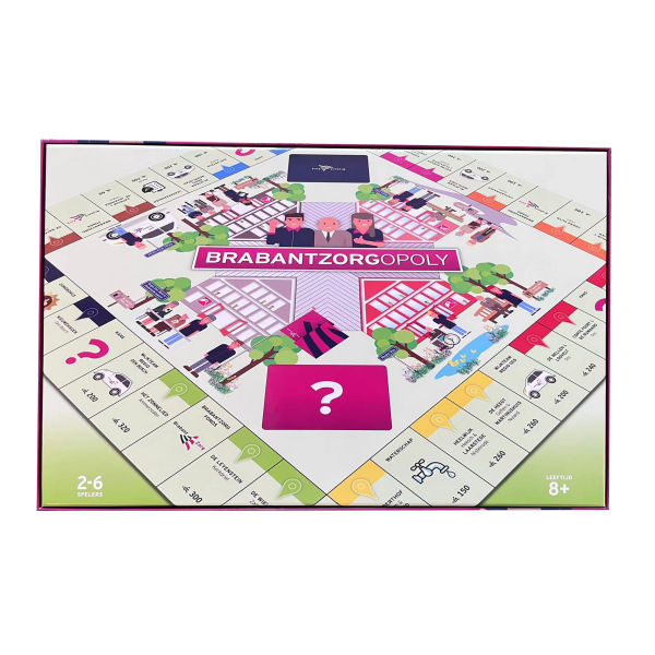 Altijd al gedroomd van een bordspel dat volledig om jouw merk, team of organisatie draait? Say no more! Met ons custom made bordspel maak je van elke spelavond een unieke beleving. Van het speelbord tot de kaarten, pionnen en het geld: alles wordt volledig gepersonaliseerd in jouw stijl.