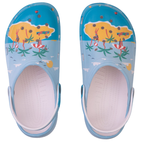 Ga voor full colour print in combinatie met custom charms en creëer een unieke clog die perfect aansluit bij jouw merkidentiteit. Comfort was nog nooit zo opvallend.