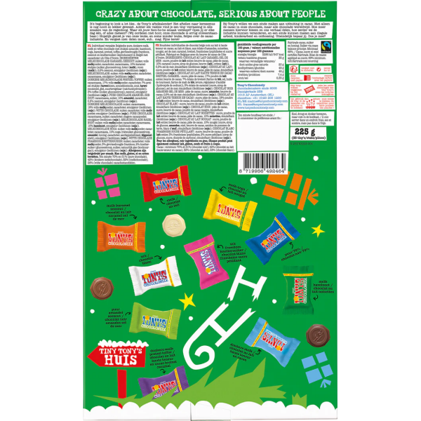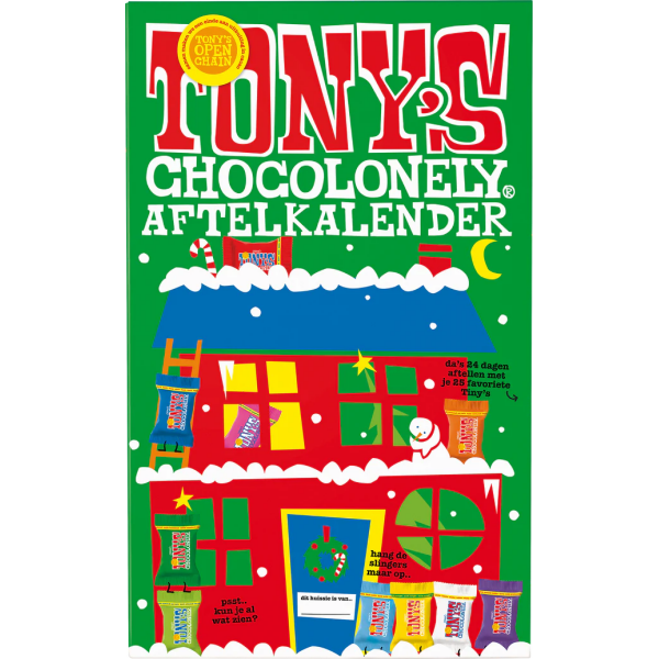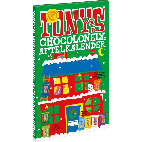 Het aftellen naar kersemuss was nog nooit zo leuk als met de Tony’s aftelkalender. Elke dag een vakkie, zo wordt aftellen ’n makkie. Steeds met een tiny verrassing in alle smaken van de regenboog. 24 dagen. 10 verschillende smaken.