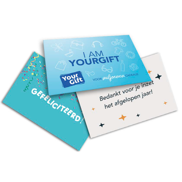Met de YourGift Cadeaukaart geef je altijd een origineel cadeau, waarbij medewerkers en relaties zelf hun geschenk kunnen uitkiezen of aan een goed doel kunnen doneren. De cadeaukaart is te besteden bij landelijke warenhuizen, bekende online webshops, restaurants, kledingwinkels en parfumerieën. Kortom een heel flexibel en gewild geschenk voor miljoenen cadeaus!