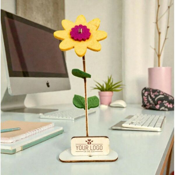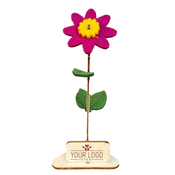 Deze vrolijke gepersonaliseerde en duurzame bloem-kaarten met logo-bordje zijn een klein cadeautje dat professionaliteit, aandacht en duurzaamheid combineert in één compact gebaar.