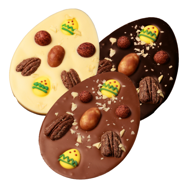 Vier Pasen op een heerlijke manier met onze luxe chocolade-eireep! Deze bijzondere reep combineert zijdezachte chocolade met feestelijke paastopping…