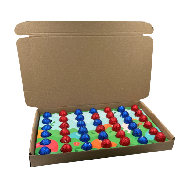 Dit leuke spelletje past nu perfect door de brievenbus. In plaats van dat je het speelt met fiches, speel je het nu met paaseitjes! Het leuke is dat als je fiches kwijt zijn omdat de verliezer ze boos door de kamer heeft geslingerd, jij ze doodleuk weer in de winkel kan halen.